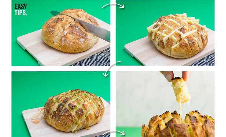 ![]() 2БУЛОЧКИ С СЫРОМ 2БУЛОЧКИ С СЫРОМВосхитительная и простая закуска. Сделайте на батоне надрезы в виде сетки на половину глубины и заполните надрезы сыром, оливковым маслом и любой другой начинкой, какая придет в голову. Запекайте в духовом шкафу примерно при 220°C, пока сыр не растает. Пальчики оближешь!
