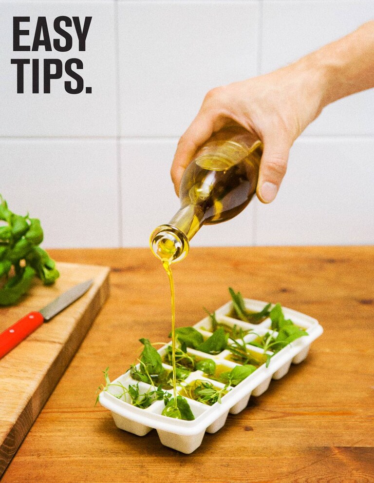 ![]() ПРИГОДИТСЯ ДЛЯ ГОТОВКИ ПРИГОДИТСЯ ДЛЯ ГОТОВКИНе удалось использовать все свежие приправы? Заморозьте их в морозильнике с оливковым маслом для использования впоследствии.
